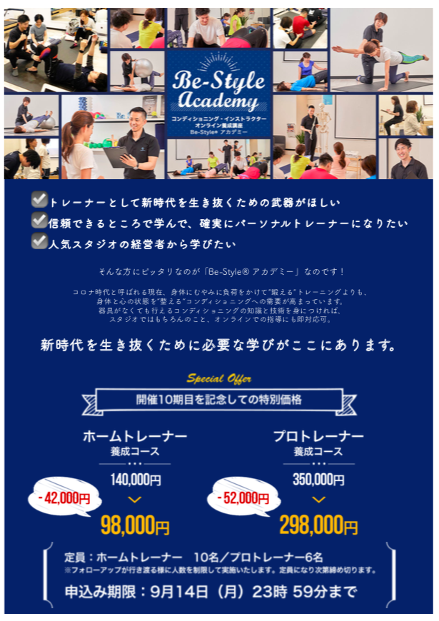 現在、Be-Styleでは第10期目となるコンディショニングトレーナー養成講座がスタートしています。