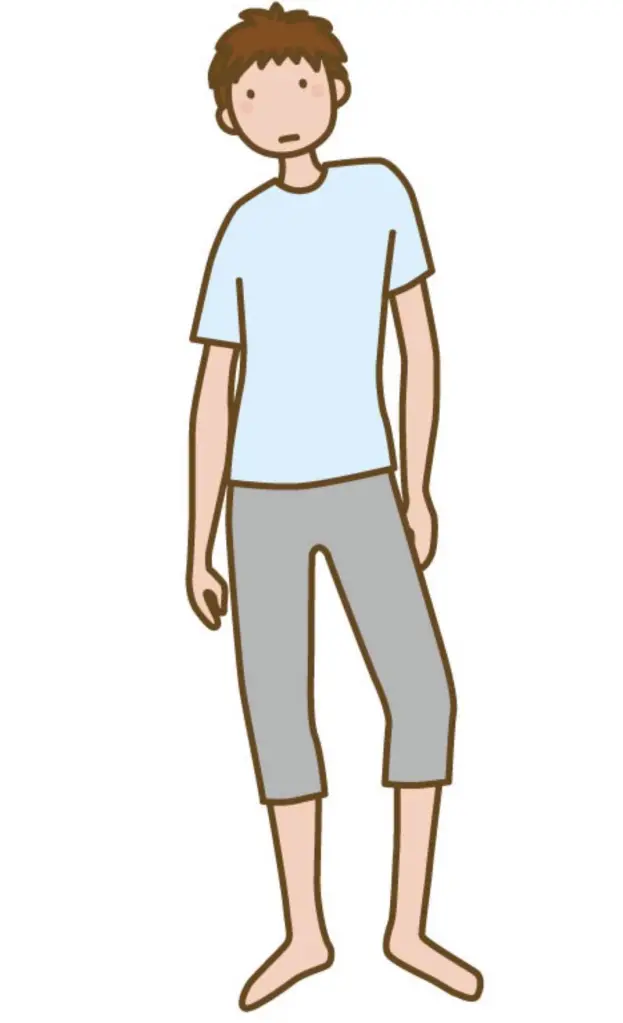 脚をそろえて立ったときに、ひざ・ふくらはぎ・くるぶしの3点をくっつけることができるか鏡を見てチェックをしてみてください。